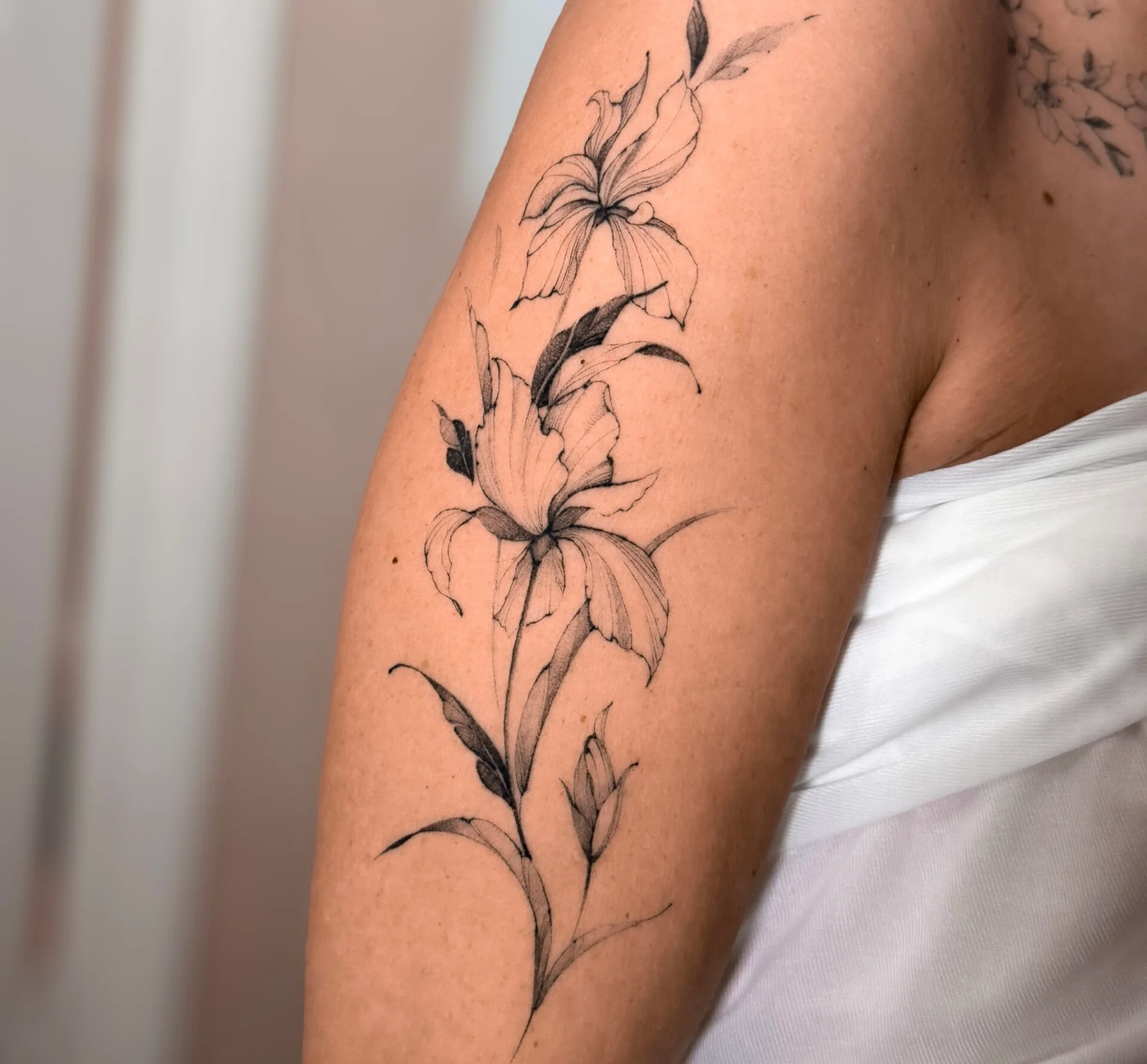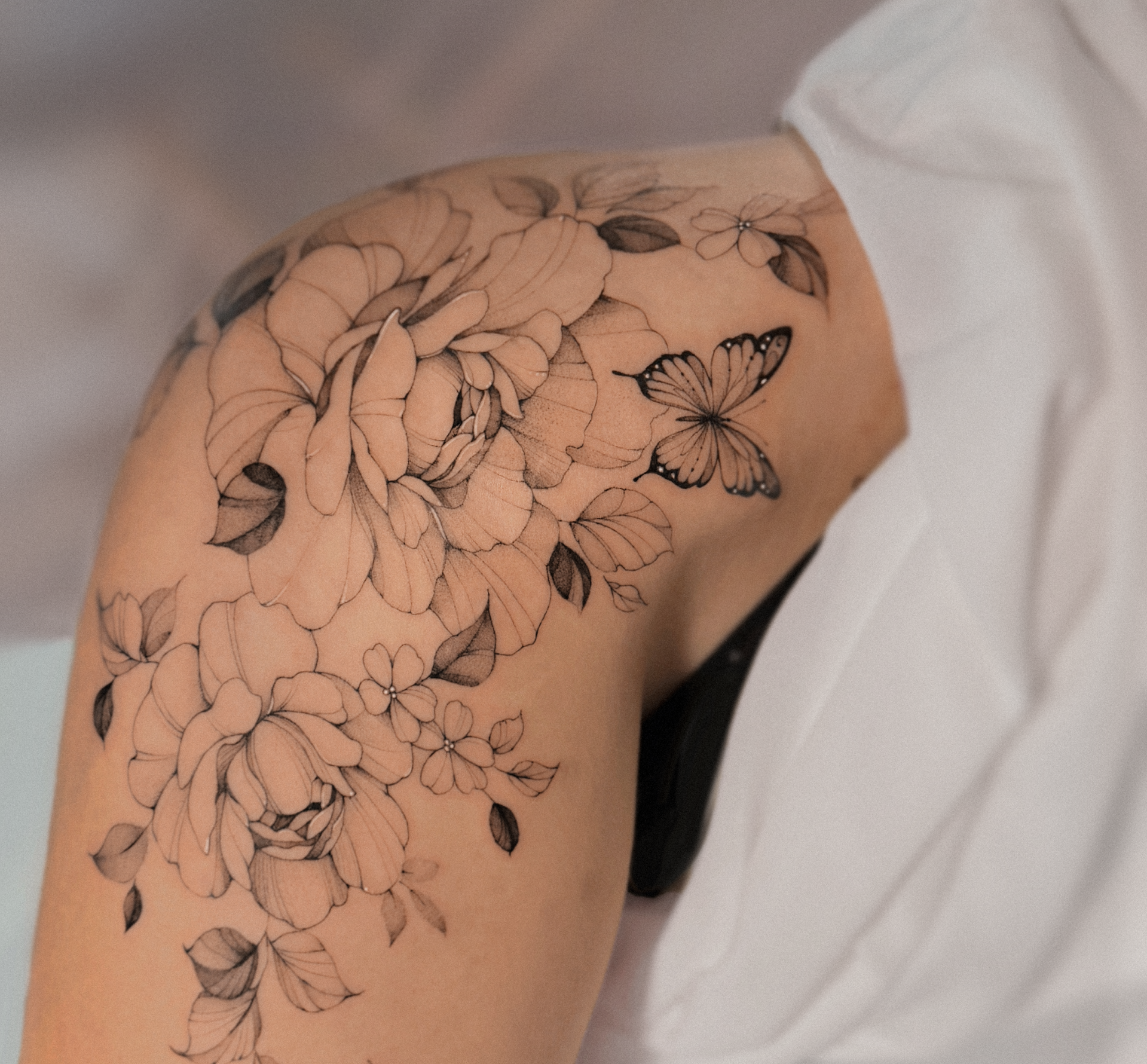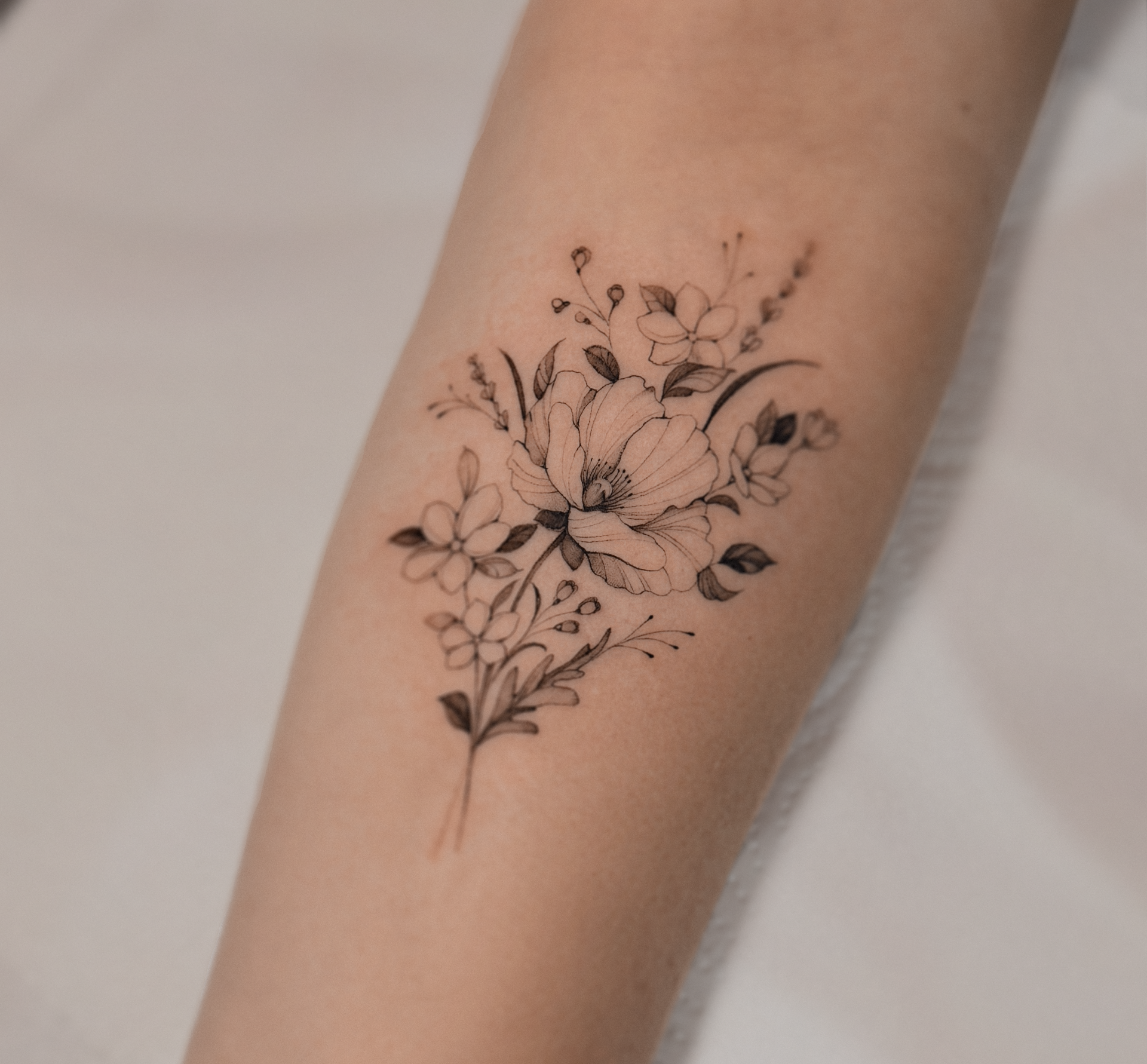 Delikatne tatuaże fine line, botanika i subtelny realizm.